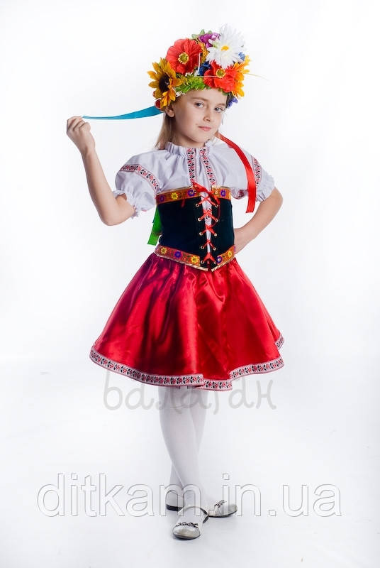 Склад: блуза, спідниця з підспідником, корсет, вінок, прикрашений квітами і стрічками